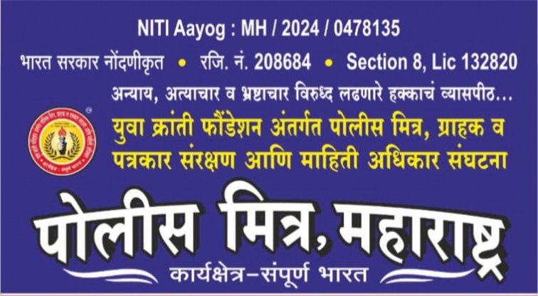 युवाक्रांति पोलिस मित्र संघटना ही एक सामाजिक संघटना असून, सामान्य जनतेवर होणारे अन्याय व अत्याचार विरुद्ध लढणारी आणि सामान्यांच्या प्रलंबित प्रंश्नाना वाचा फोडणारी संघटना म्हणजे युवा क्रांती पोलीस मित्र संघटना होय. संघटनेच्या माध्यमातून तळागाळातील जनतेला न्याय मिळवून देण्याचे काम केले जाते. जनतेचे हित लक्षात घेऊन संघटना समाजातील जबाबदार व्यक्तींतींची निवड करून संघटनेमध्ये सदस्यत्व देते.वरिष्ठांच्या पूर्वपरवानगी व मार्गदर्शनाखाली पदाधिकारी व सदस्य यांचे अथक परिश्रमांतून संघटना संपूर्ण भारत देशात काम करत आहे.