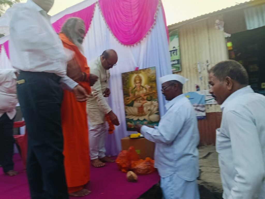 सदर कार्यक्रम राघवेश्वर देवस्थानचे मठाधिपती प.पु. श्री श्री १०८ महंत राघवेश्वरानंदगिरीजी महाराज यांच्या प्रमुख उपस्थितीत व वनराई कृषी उद्योग समुह गोधेगावचे मा. श्री. आबासाहेब भोकरे साहेब यांच्या अध्यक्षतेखाली आणि सुभेदार होन, कल्याणराव होन, डॉ.जी.एस रोकडे पोलीस पाटील, श्रीमती सिंधुबाई आहेर,नानासाहेब थोरात, डॉ. सुयोग पवार, दिगंबर पांडुरंग कदम यांच्या उपस्थितीत राघवेश्वरानंदगिरीजी महाराजांच्या समवेत अध्यक्षांच्या हस्ते प्रथम विद्येची देवता माता सरस्वतीच्या प्रतिमेचे पुजन करून सांस्कृतिक कार्यक्रमास सुरुवात करण्यात आली.