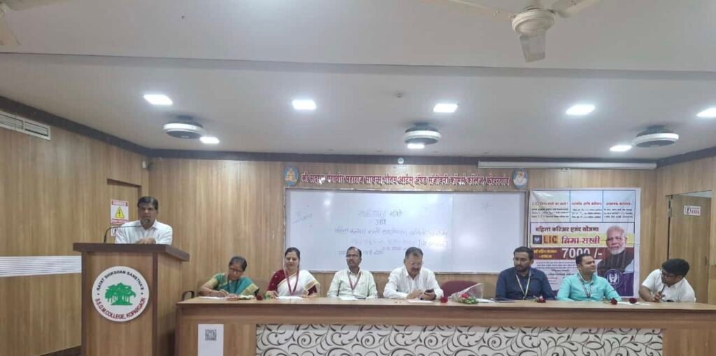 प्रमुख अतिथी मा.श्री.गौरव रत्नपारखी यांनी युवा सखी योजनेची सविस्तर माहिती देताना,“विमा योजना तळागाळापर्यंत पोहोचली नाही ती पोहोचणे आवश्यक आहे”.असे प्रतिपादन केले.तसेच महाविद्यालयातील मानसशास्त्र विभागप्रमुख प्रा.गोरक्ष नरोटे यांनी, “व्यक्तिमत्त्वासाठी तीन घटक महत्त्वाचे असून इहम,अहंम,परमाहंम या संकल्पना स्पष्ट करताना विचारांमध्ये परिवर्तन केले तर भावनाही बदलतात आणि त्यानुसार वर्तन घडते.”असे सांगितले.