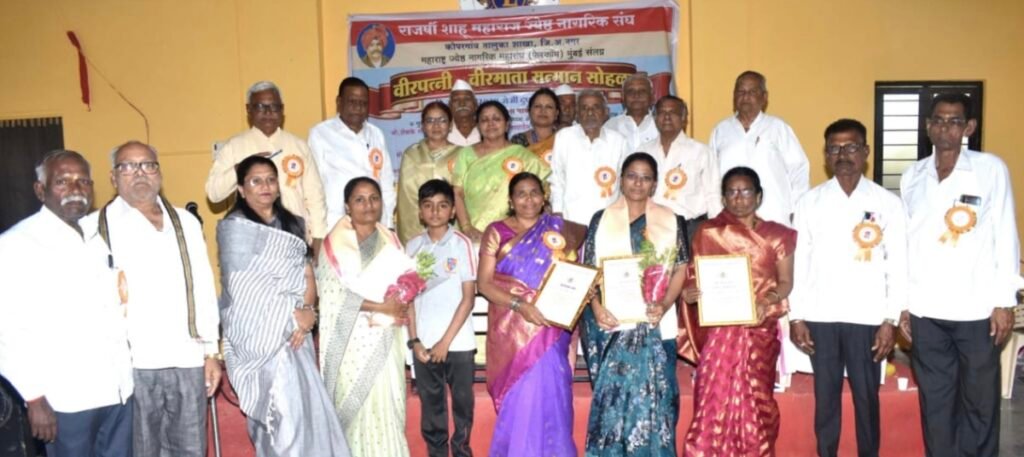कोपरगाव ता. २६ : – भारतीय सीमेवर कार्यरत असताना शहीद झालेल्या जवानांच्या वीर पत्नी व वीर माता यांचा सन्मान कोपरगाव तालुक्यातील राजर्षी छत्रपती शाहु महाराज संघ यांचे वतीने करण्यात आला. छत्रपती शाहू महाराज संघाचे माजी अध्यक्ष श्री मनसाराम पाटील यांचे अध्यक्षतेखाली पार पडला.