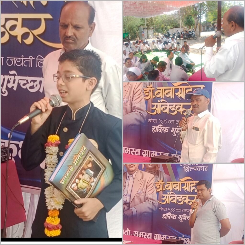 मुख्याध्यापक मा. श्री. अशोकराव वारुळे सर आपले मनोगत व्यक्त करतांना म्हणाले कि, साधारण १३४ वर्षापूर्वी आपल्या भारत भूमीला एक स्वप्न पडलं आणि १४ एप्रिल १८९१ ला रामजी बाबांच्या कुळात या नवरत्नाचा महु या गावी जन्म झाला. अन्यायाविरुद्ध लढण्याचे त्यांच्या मनामध्ये बिंबवण्याचे काम त्यांच्या आई – वडिलांनी बाल वयातच केले. दीन -दलित समाजावर होणारे अन्याय जर दुर करायचे असेल तर शिक्षण हेच वाघीणीचे दुध आहे. शिक्षणाशिवाय पर्याय नाही आणि त्यांनी अहोरात्र मेहनत घेऊन बॅरिस्टर पर्यंतचे शिक्षण पूर्ण केले. समाजामध्ये प्रचंड प्रमाणात निर्माण झालेला गदारोळ, दरी भरून काढण्याचा विडाच उचलला आणि तो पूर्णत्वास नेला. आपल्याला स्वतःच्या कुटुंबातील दहा व्यक्तीच्या विचारांची सुसंगती साधणे अवघड जाते. मात्र, आठरापगड जातीच्या लोकांच्या विचारांती संविधान लिहिण्याचे महान कार्य डॉ. बाबासाहेब आंबेडकर यांनी केले. म्हणूनच त्यांना अवघ्या जगाने महामानव म्हणून उदबोधित केले. अशा या “महामानवास” त्रिवार अभिवादन करतं मनोगतास पूर्णविराम दिला. त्याचबरोबर माजी. सरपंच दिगंबर बढे,अतुल निळकंठ सर आदिंनी आपले मनोगत व्यक्त केले. यावेळी बालगोपाळ, माता -भगिनी, ग्रामस्थ व भिमसैनिक मोठया संख्येने उपस्थित होते.
