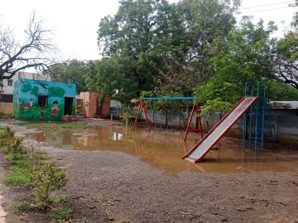कोपरगाव : लहान मुलांचे वयाबरोबर शरीररचनेची त्याचप्रमाणात वाढ होऊन उद्याची युवा पिढी सुदृड व निरोगी असावी. साथीच्या रोगांपासून स्वसंरक्षणाइतकी अंगी प्रतिकारशक्ती निर्माण व्हावी. या उद्देशाने मा आमदार श्री आशुतोषदादा काळे यांच्या प्रयत्नातुन कोपरगाव मतदारसंघातील प्रत्येक गावात तसेच वाड्या वस्त्यांवरही खेळाचे साहित्य देण्यात येऊन बसविण्यात आले आहे. मात्र, आज त्या साहित्याबरोबर पावसाचे पाणी खेळ खेळत असल्याचे चित्र दिसत आहे.