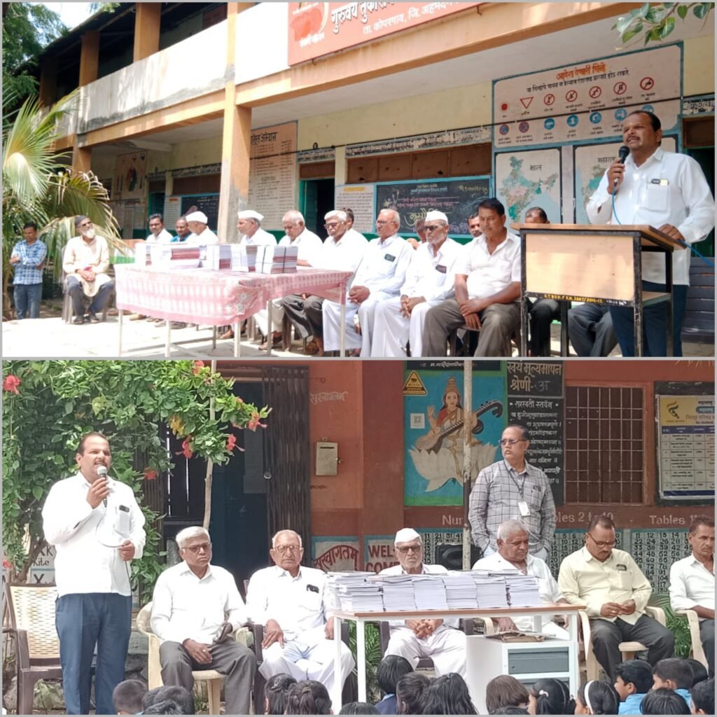 शाळेचे मुख्याध्यापक श्री. डी.एन. बागुल सर यांनी कार्यक्रमाचे अध्यक्ष यांचा सर्वांच्या वतीने गुलाब पूष्प देऊन सत्कार केला.सदर प्रसंगी विद्यालयाचे मुख्याध्यापक बागुल सर, व सर्व स्टाप तसेच जिल्हा परिषद शाळेचे मुख्याध्यापक दरेकर सर व सर्व स्टाप उपस्थित होते. तर शेवटी उपस्थितांचे आभार श्री. चिंधे सर व जगदाळे सर यांनी मानले.