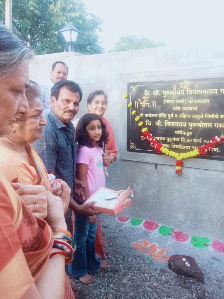 कोपरगांव :-तालुक्यातील श्रीक्षेत्र कोकमठाण पंचक्रोशीतील प्रती त्रंबकेश्वर समजल्या जाणा-या कचेश्वर मंदिराच्या भिंतीचा जिणोध्दार भुमिपुत्र कै पुरूषोत्तम विनायक गरूड यांच्या स्मरणार्थ श्रीमती गितांजली व विजय पुरूषोत्तम गरूड परिवारांने केला त्याबददल त्यांचा गांवच्यावतीने व मंदिर देवस्थान समितीच्यावतीने शुक्रवारी सत्कार करण्यांत आला.