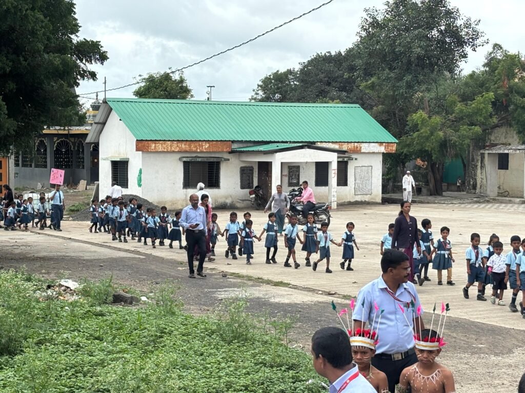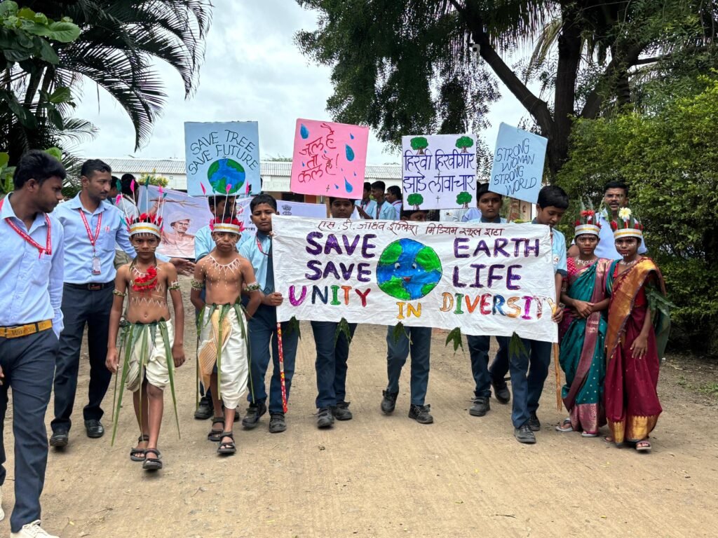 सिन्नर प्रतिनिधी : -एस डी जाधव इंग्लिश मीडियम स्कूल मध्ये दि.१ सप्टेंबर २०२५ रोजी भगवान बिरसा मुंडा यांच्या १५० व्या जयंतीनिमित्त शाळेमध्ये वृक्ष संवर्धन, पर्यावरण संवर्धन, स्त्री सबलीकरण आणि राष्ट्रीय एकात्मता या मूल्यांची जोपासना करण्यासाठी भव्य पदयात्रा काढण्यात आली.