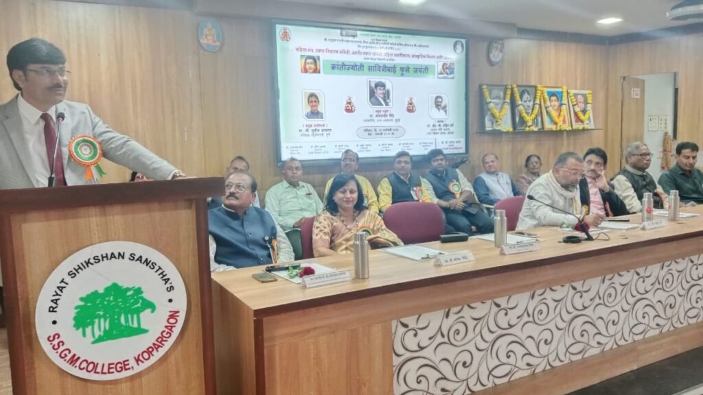 कोपरगाव :- “आजच्या विद्यार्थ्यांनी आणि तरुण पिढीने सावित्रीबाईंच्या विचारांचा आदर्श डोळ्यासमोर ठेवून शिक्षणाला सामाजिक परिवर्तनाचे साधन मानले पाहिजे. शिक्षण केवळ नोकरीसाठी नव्हे, तर समाजात सकारात्मक बदल घडविण्यासाठी असावे, हीच त्यांची खरी शिकवण आहे.अशा प्रेरणादायी विचारवंताची जयंती साजरी करून महाविद्यालयाने सामाजिक बांधिलकी जपली आहे. आयोजकांचे मी मनापासून अभिनंदन करतो व सर्व उपस्थितांना सावित्रीबाई फुले यांच्या विचारांचा वारसा पुढे नेण्याचे आवाहन करतो.” असे प्रतिपादन उच्च न्यायालय मुंबई येथील न्यायमूर्ती व एस. एस. जी. एम. महाविद्यालयाचे माजी विद्यार्थी मा. श्री. आबासाहेब शिंदे यांनी केले. ते रयत शिक्षण संस्थेच्या श्री सद्गुरु गंगागीर महाराज विज्ञान, गौतम आर्ट्स ॲन्ड संजीवनी कॉमर्स कॉलेज, कोपरगाव येथील महिला मंच, अंतर्गत तक्रार समिती, तक्रार निवारण समिती, सांस्कृतिक विभाग आणि अंतर्गत गुणवत्ता हमी कक्ष यांच्या संयुक्त विद्यमाने आयोजित क्रांतिज्योती सावित्रीबाई फुले जयंती निमित्त विशेष व्याख्यानात बोलत होते.कार्यक्रमाचे अध्यक्षस्थान रयत शिक्षण संस्थेचे जनरल बॉडी सदस्य व महाविद्यालय विकास समितीचे सदस्य ॲड संदीप वर्पे यांनी भूषविले.