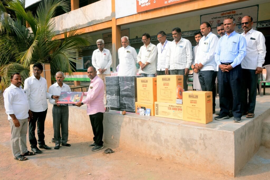 आज साऊंड सिस्टिमचा संच सर्व माजी विद्यार्थ्यांच्या उपस्थितीत विद्यालयाचे मुख्याध्यापक बागुल डी.एन व शिक्षक वृंद यांच्याकडे औपचारिकरित्या सुपूर्त करण्यात आला. या आधुनिक साऊंड सिस्टिममुळे विद्यार्थ्यांमध्ये आनंदाचे व उत्साहाचे वातावरण निर्माण झाले आहे. यावेळी बोलताना मुख्याध्यापक व शिक्षकांनी सांस्कृतिक कार्यक्रम, परिपाठ व विविध शालेय उपक्रमांसाठी या उपकरणांची नितांत गरज होती, असे नमूद करत माजी विद्यार्थ्यांचे आभार मानले.