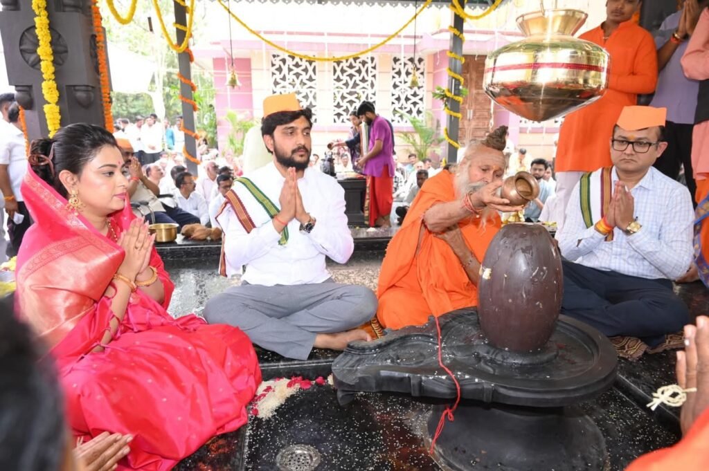 कोपरगांव :- माजीमंत्री स्व.शंकरराव कोल्हे यांच्या कर्मभूमीत (शिंगणापुर) राष्ट्रसंत जनार्दन स्वामी आश्रमाचे मठाधिपती प. पू. रमेशगिरी महाराज यांच्या हस्ते सहकारमहर्षी शंकरराव कोल्हे सहकारी संजीवनी साखर कारखाना कार्यस्थळावर मारूती मंदिरालगत संजीवनी उद्योग समुहाचे अध्यक्ष बिपिनदादा कोल्हे यांच्या संकल्पनेतुन जनेश्वर महादेव मंदिराची प्राणप्रतिष्ठा शुक्रवारी संपन्न झाली.