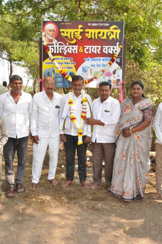 कोपरगाव :- शहरामध्ये शहरवासियांना मिळणाऱ्या सुख सुविधा या शहरापुरत्या मर्यादीत राहिल्या नसुन, शहराप्रमाणेच सर्व सुख सुविधा ह्या ग्रामीण भागातील सर्वसामान्य नागरिकांनाही मिळाव्या यासाठी ग्रामीण भागातील नवउद्योजक शहरात नोकरीच्या मागे न धावता आपापल्या गावी छोटे मोठे व्यवसाय उभे करून नागरिकांसाठी सेवा देण्याचे कार्य हाती घेत आहे. असेच एक तालुक्यातील संवत्सर बिरोबाचौक येथील श्री. नवनाथ वाडेकर यांनी नविनच साई गायत्री कोल्ड्रिंक्स आणि टायर वर्क्स शॉप सुरु केले असून सदर वास्तुचे उद्घाटन बाजाथान येथील महंत पं. पु. हरीशरनगिरीजी महाराज यांच्या हस्ते करण्यात आले.