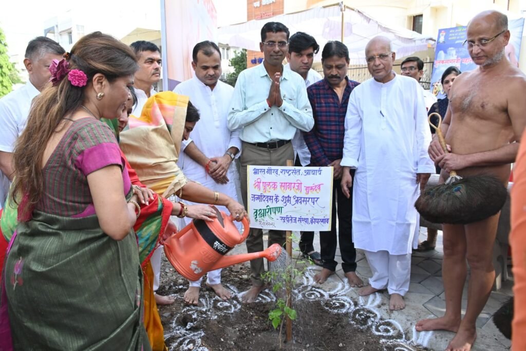 जैन राष्ट्रसंत व भारत गौरव,प्रखर वक्ते पूलक सागर महाराज याच्या वाढदिवसानिमीत्त भाजपाच्या प्रदेश सचिव स्नेहलता कोल्हे आर्शिवाद घेतांना तसेच वाढदिवसाची आठवण म्हणून वृक्षारोपण करतांना.